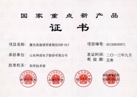激光高速球形夜視儀SHR-DLV列入2013年度國家重點新產品計劃項目
