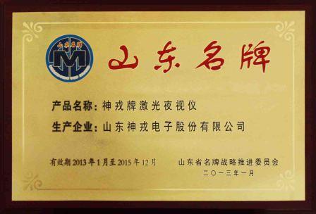 神戎牌激光夜視儀被評為2012年度山東名牌產(chǎn)品