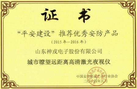 神戎榮獲“平安建設”推薦優秀安防產品獎