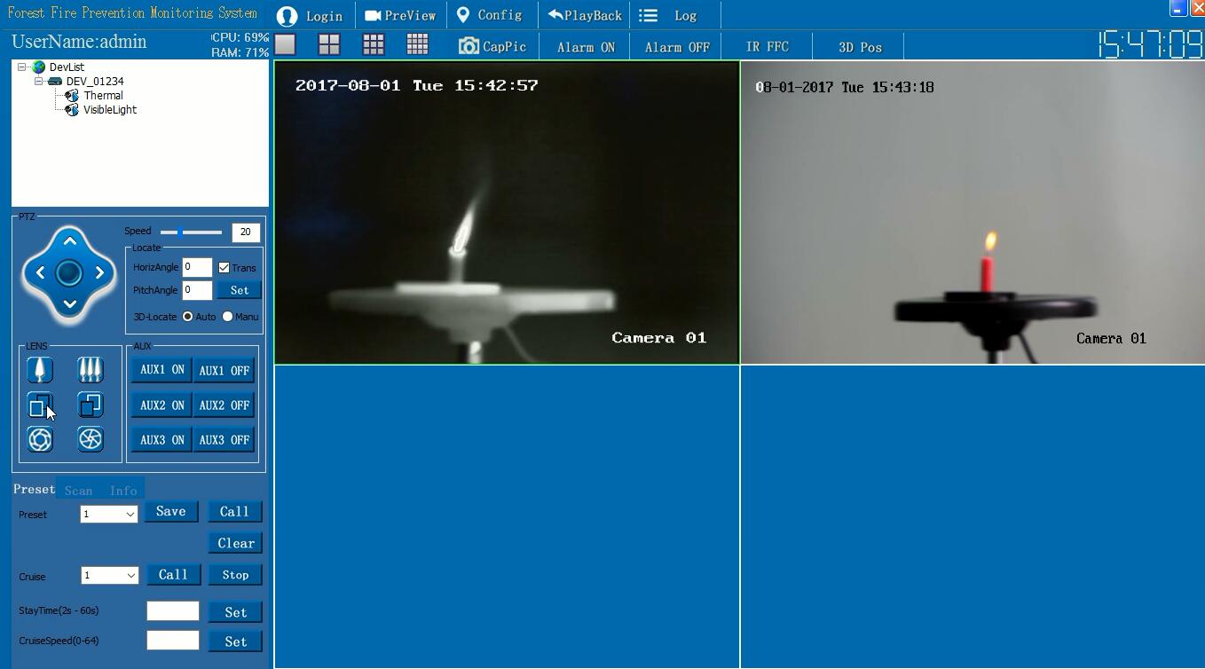 The system realizes the real-time video monitoring on the monitoring area and can display the front-end real-time scene on the display terminal of the monitoring center. Background management using C / S architecture, a computer as a monitoring center server, multiple client software. The associated screen of alarm events shows that supervisors can easily monitor the entire system.