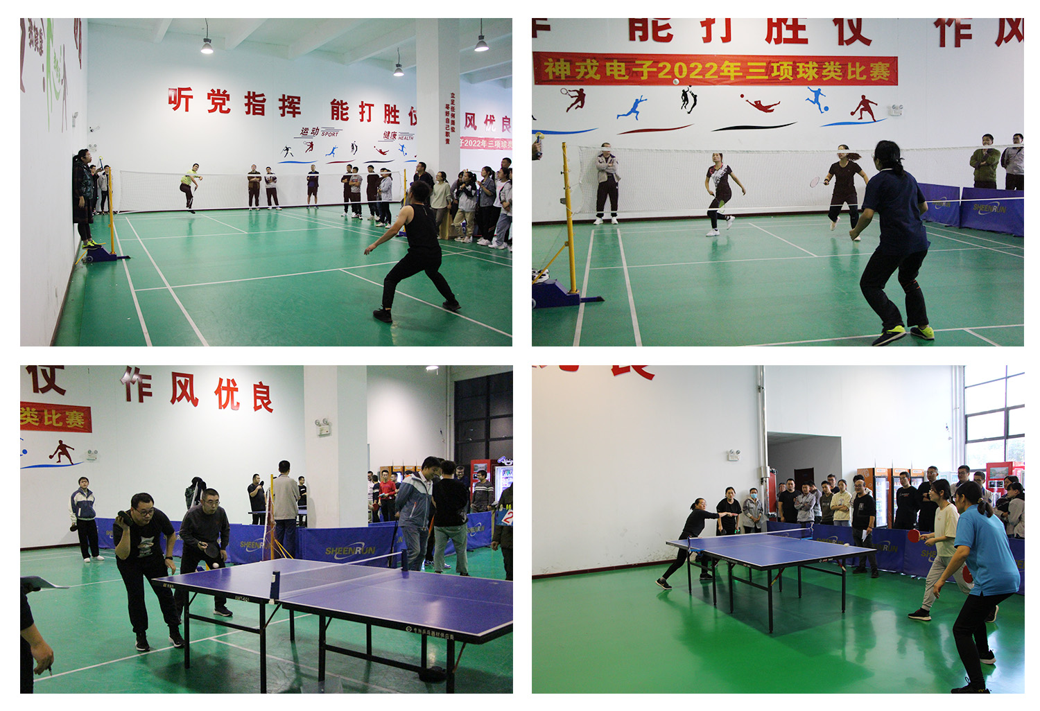 為豐富員工的業余文化生活,促進員工之間的交流,激發員工強身健體的意識,神戎電子2022年羽毛球、乒乓球、籃球三項球類比賽自2022年10月9日至24日在公司室內運動場舉行。此次比賽項目為團體項目,羽毛球、乒乓球、籃球團體比賽分別有十五支、十三支和九支隊伍參加,參賽員工達175人。
