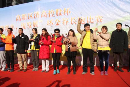 2014年12月20日上午,濟南高新區總工會主辦的濟南控股杯“迎新年,促發展”環金谷長跑比賽,在濟南高新區漢峪金谷小區東南門隆重舉行。賽道是由龍奧北路、鳳凰路南段、經十路及舜華南路構成的環形封閉賽道,全程3KM,海拔高處135M。本次比賽分為三大組,共57支隊伍,將近300人參賽,其中機關組28支隊伍,企業組29支隊伍(含二級工會組6支隊伍)。我公司派出一支由總工程師趙萬存、技術中心高倩、董術永和制造中心李國強、溫東亮組成的優秀團隊。
