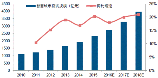 而根據IDC預測,未來10年與智慧城市建設相關投資將超過2萬億元。回顧2010年以來我國智慧城市投資額保持年均14.81%的復合增長率,我們判斷在PPP等模式助力下,行業增速將保持環比上升的趨勢。同時隨著行業投資額的加大,大項目經驗和資金實力將提升行業的隱形壁壘,行業集中度有望逐步提升,即上市公司的市場拓展速度將顯著高于行業增速。
