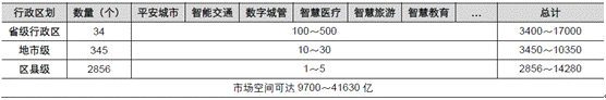 智慧城市市場空間測算(億元)