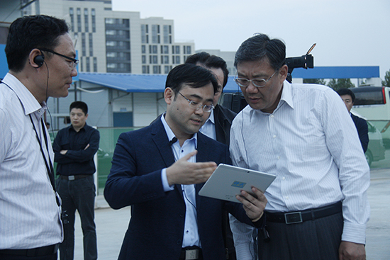 董事長鄒海濤在孫村廠房現(xiàn)場向王文濤書記匯報公司情況