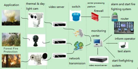 Rely on its own advanced laser illumination and infrared thermal imaging night vision technology,combine with image acquisition, network transmission and display system,Sheenrun develops forest fire prevention intelligent analysis system which can monitoring round the clock.The system is based on digital and network video monitoring.Compared with the general network video monitoring, it is a kind of higher-end intelligent application. Forest fire intelligent analysis system can realize unattended continuous work, automatically do the analysis and judgement to the video image informations; Discover unusual smoke and fire timely, do the fire alarm and fire behavior analysis in the fastest and best way;Assist the firefighters handle fire crisis effectively, and the maximum to reduce false positives and omission phenomenons; At the same time also can see the scene real-time image, command and dispatch fire fighting directly according to visual images.